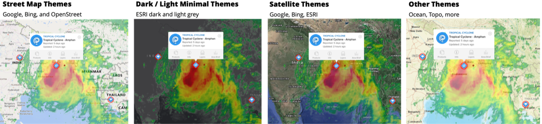 DisasterAWARE comes with a variety of background maps that you can choose from. Below are just a few examples.