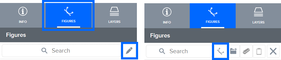 Once in the Figures panel, click the Edit icon. Next, click the Drawing icon to add a figure. You can organize figures into folders by clicking the folder icon, and then dragging and dropping the figures into the folder. |