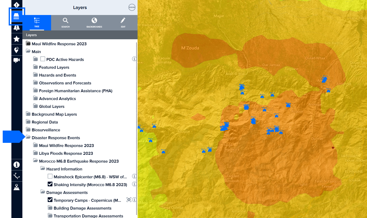 Open Disaster Response Events subfolder to view all current and historical disaster response layers. |