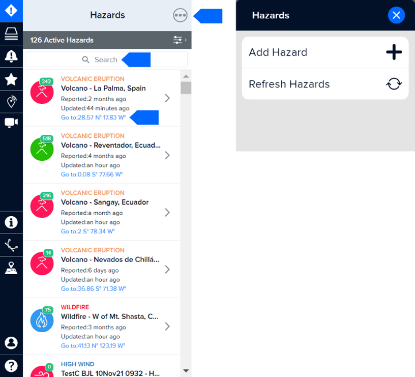 Next, click the Filter icon to the top right of the panel to use the Advanced Hazard Search feature. |